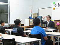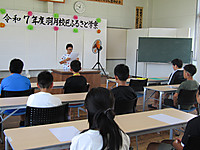 1枚目の写真は,入所式の様子。2枚目の写真は,市長さんと語る会の様子。3枚目の写真は,退所式の様子です。